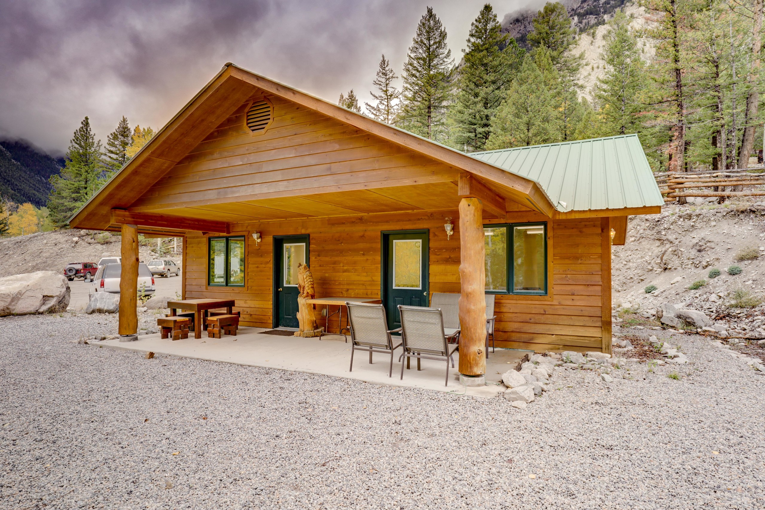 There are several Chalets and Cabins ranging from a large cabin perfect for a small family reunion or staff retreat to private couples cabin perfect for a second honeymoon or private retreat.